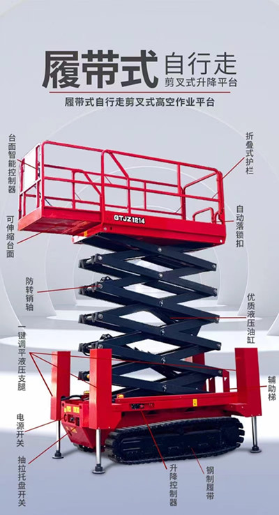 自行式履帶升降機(jī)也可叫做履帶式升降平臺(tái),自走式履帶升降機(jī),履帶式升降機(jī)是根據(jù)當(dāng)今市場(chǎng)環(huán)境所造就的一款新型升降機(jī),履帶式升降機(jī)區(qū)別于常見的輪式升降機(jī),外形好像履帶式裝甲車,霸氣側(cè)漏,是一款室外復(fù)雜環(huán)境使用的肌肉型升降機(jī)